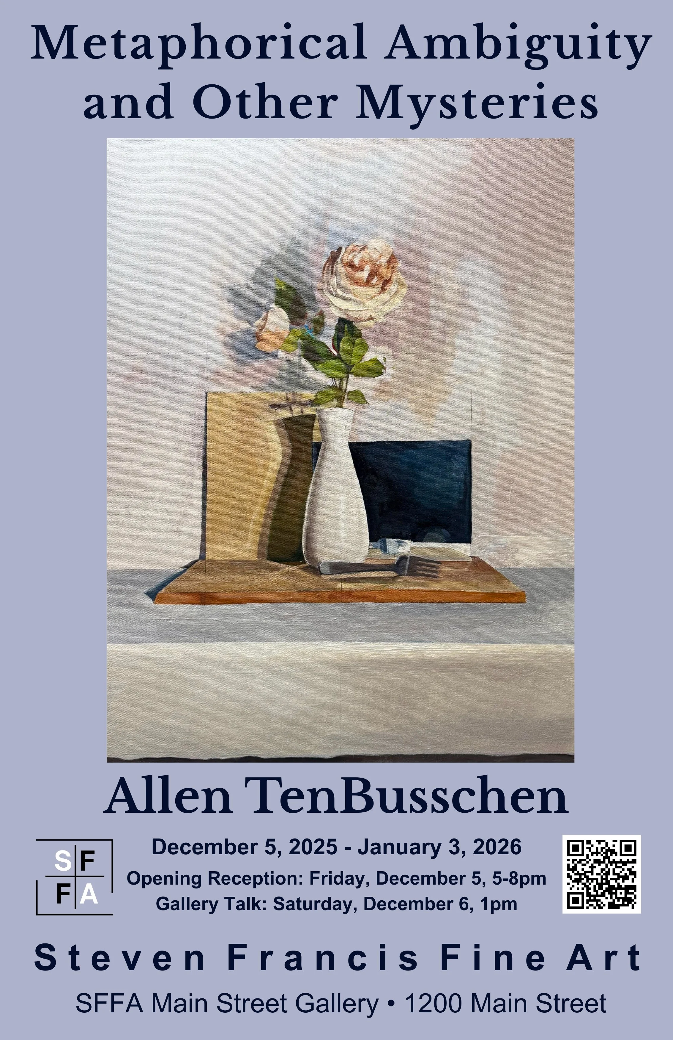 Space can be represented through various frameworks, including wave phenomena, particle behavior, acoustics, chromatic vibrations, rhythm, and motion. There is also the space between to consider. While we consider that we inhabit space – both interior and exterior – at the same time we are thinking about it, the ideas become more complex. Possibilities become endless. Like space itself. A painter’s task is to figure out how to depict landscape, still life or portraits in space on a flat surface using colored pigment. In this collection of my work, I explore different approaches I have used as vehicles toward this goal. Including the space within and without.